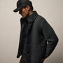 Made from a Recycled Cashmere and Wool Blend. Double Faced Fabric creates and luxurious weight and feel. Features a removable zip out lightweight liner vest filled with PrimaLoft. Button front closure. Suede trimmed collar and placket detail. Front slash pockets.