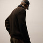 Heavy weight, lofty soft Italian spun cashmere. Funnel neck with contrast collar detail. Zip front placket. Suede below patch details. Ribbed collar, sleeve cuff & bottom hem.